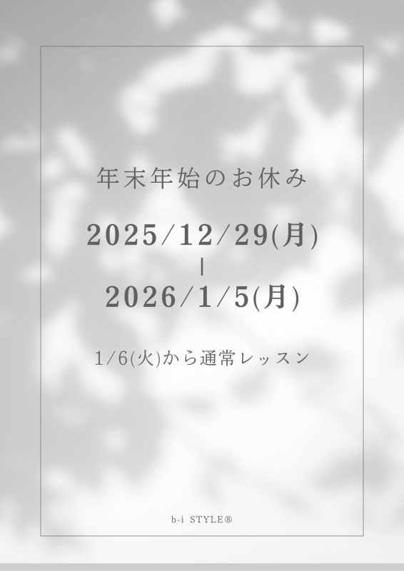 誠に勝手ながら、下記期間はスタジオお休みです。